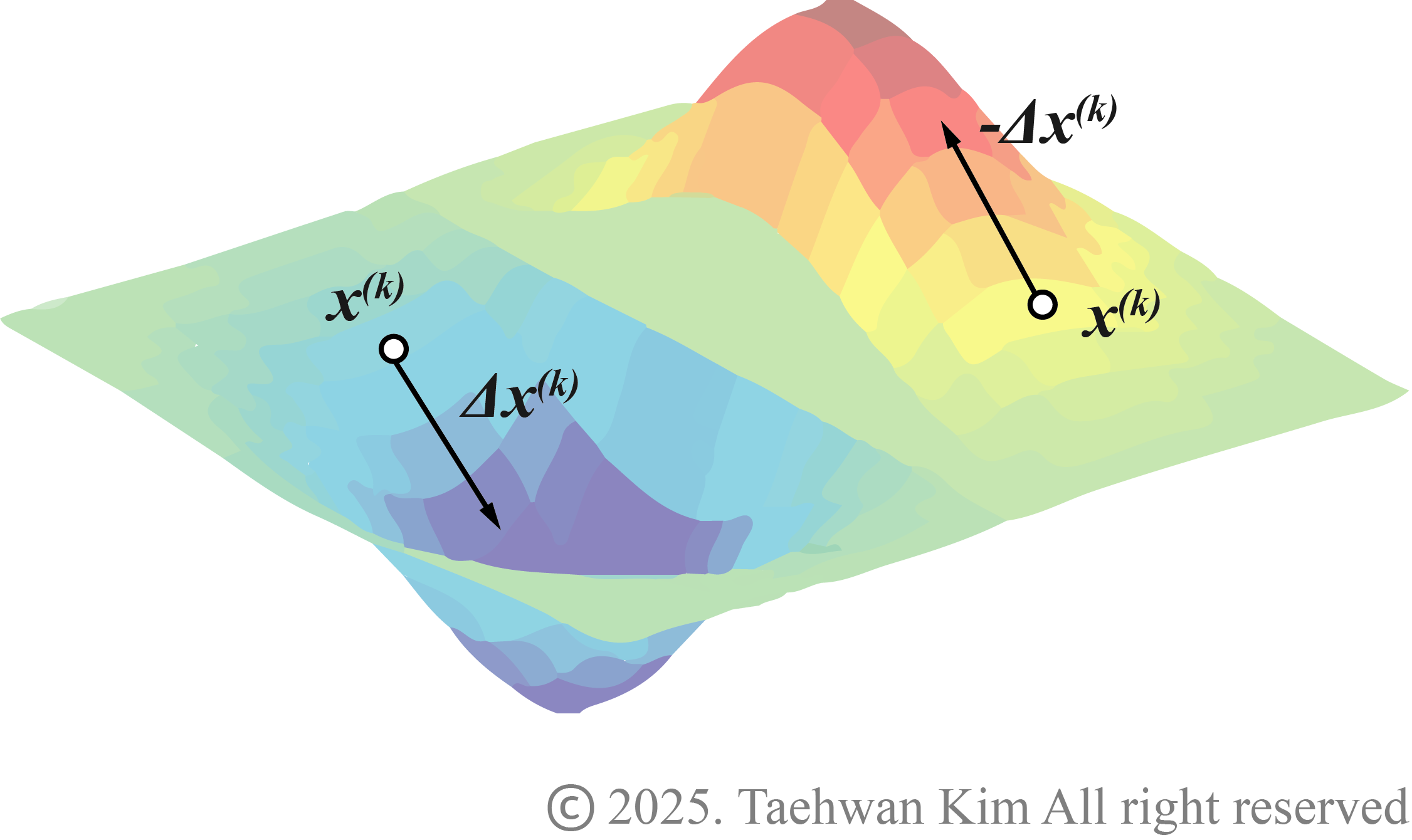 $$ \begin{align} \textbf{x}^\left( k + 1 \right) = \textbf{x}^\left(k\right) + \Delta \textbf{x}^\left(k\right);~~~~k=0, 1, 2, \cdots \end{align}$$