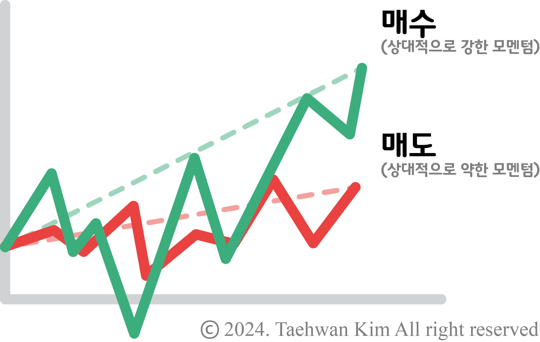 1. 모멘텀 경제학에서 말하는 모멘텀 (momentum)은 주식 가격이 어떤 이유로든 한 방향으로 움직이기 시작하면 계속 그 방향으로 움직이려는 관성을 뜻한다. 한동안 주가가 상승한 종목들은 계속해