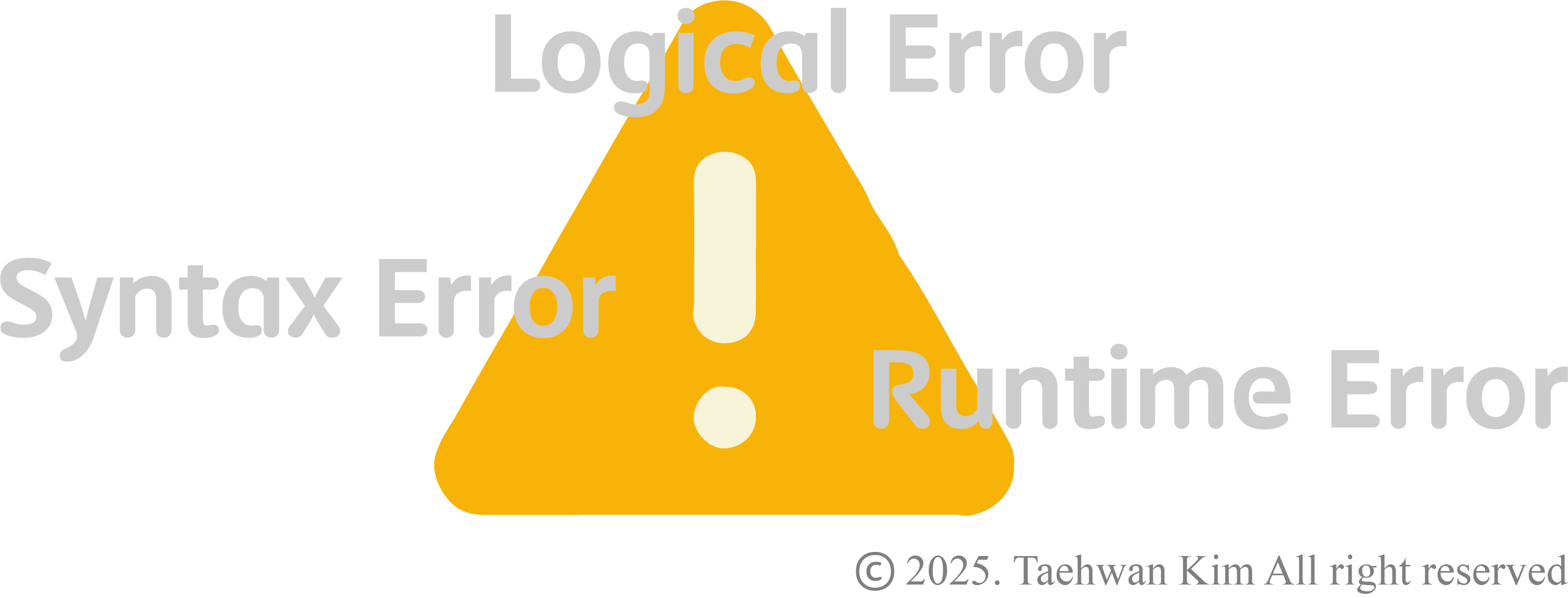 오류 프로그램을 실행할 때 발생할 수 있는 오류는 크게 ▲문법 오류, ▲논리 오류, ▲실행 오류로 나눌 수 있다. 문법 오류(syntax error)는 들여쓰기를 맞추지 않는 등의 잘못된 문법을 사용했을 때 발생한다. 문법 오류 없이 프로그램을 작성하여 실행하더라도 예상한 결과가 나오지 않을 수 있다. 이를 논리 오류(logical error)라고 하며, 이를 해결하기 위해서는 실행 분기마다 발생할 수 있는 경우의 수를 확인하여 예상하지 못한 경우가 있는지 검토해야 한다. 실행 오류(runtime error)는 사용자가 함수에 잘못된 인자를 입력하거나 존재하지 않는 파일을 불러올 때 발생한다. 문법 오류는 컴파일러가 프로그램 실행 이전에 발견하여 알려주므로 바로 대처할 수 있지만, 논리 오류와 실행 오류와 같이 프로그램 실행 중에 발생하는 예외는 왜 발생하였는지 분석하고 이를 방지하기 위한 코드를 따로 작성해주어야 한다.