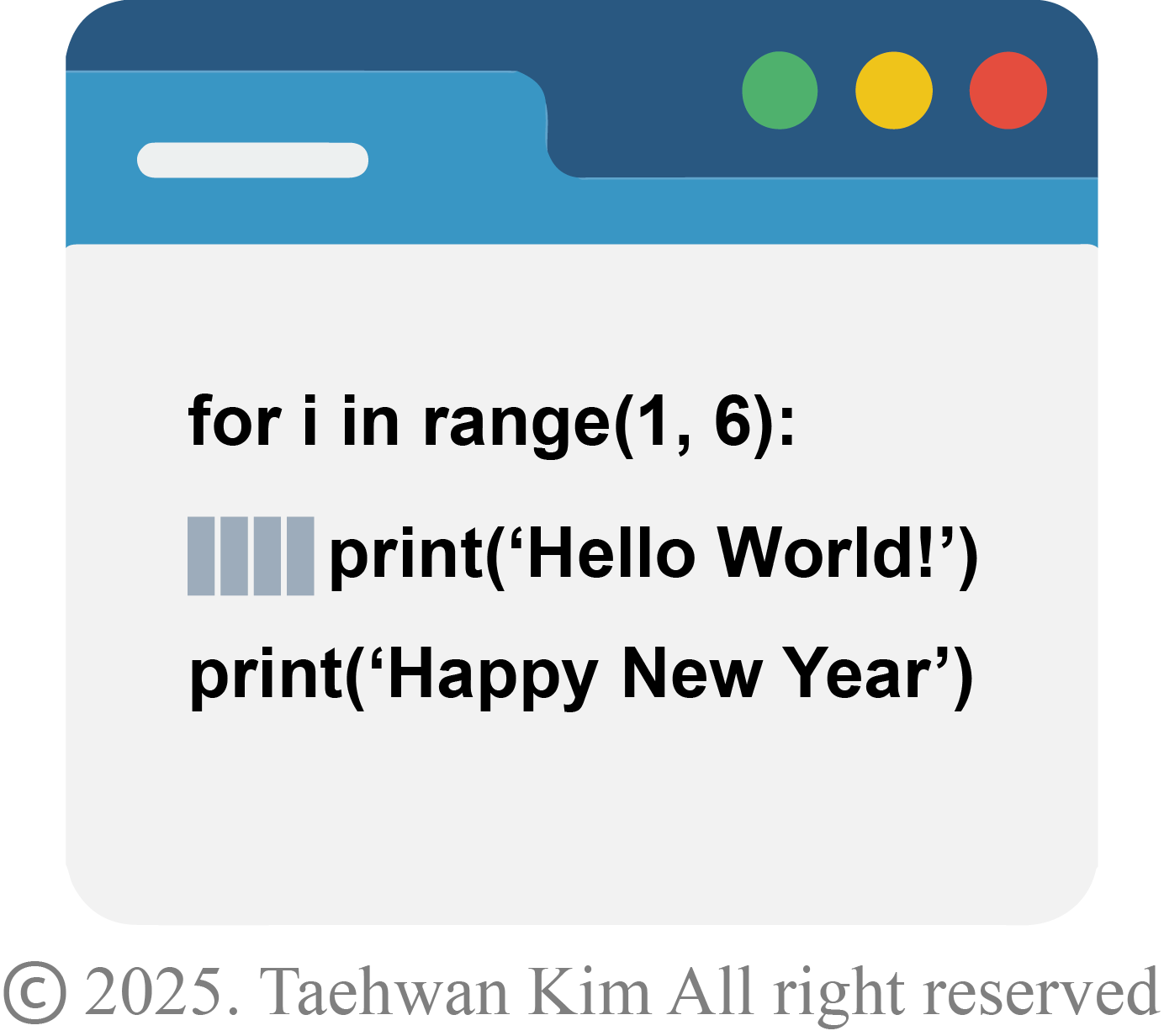 print(2025) for i in range(1, 6): print('Hello World!') print('Happy New Year')5. 주석