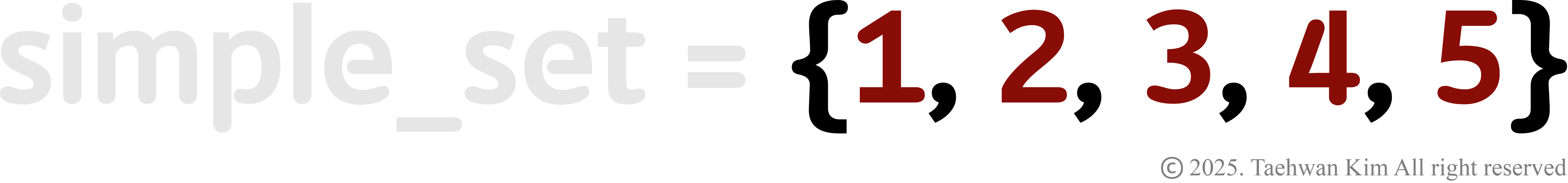 simple_dict = {1:'a', 2:'b', 3:'c'} # 딕셔너리 정의 시 순서 기억 simple_dict[4] = 'd' # 딕셔너리 객체 추가 시 순서 기억 simple_dict[5] = 'e' for key in simple_dict: # 딕셔너리가 기억하는 입력 순서에 따라 키 출력 print(key)3. 세트