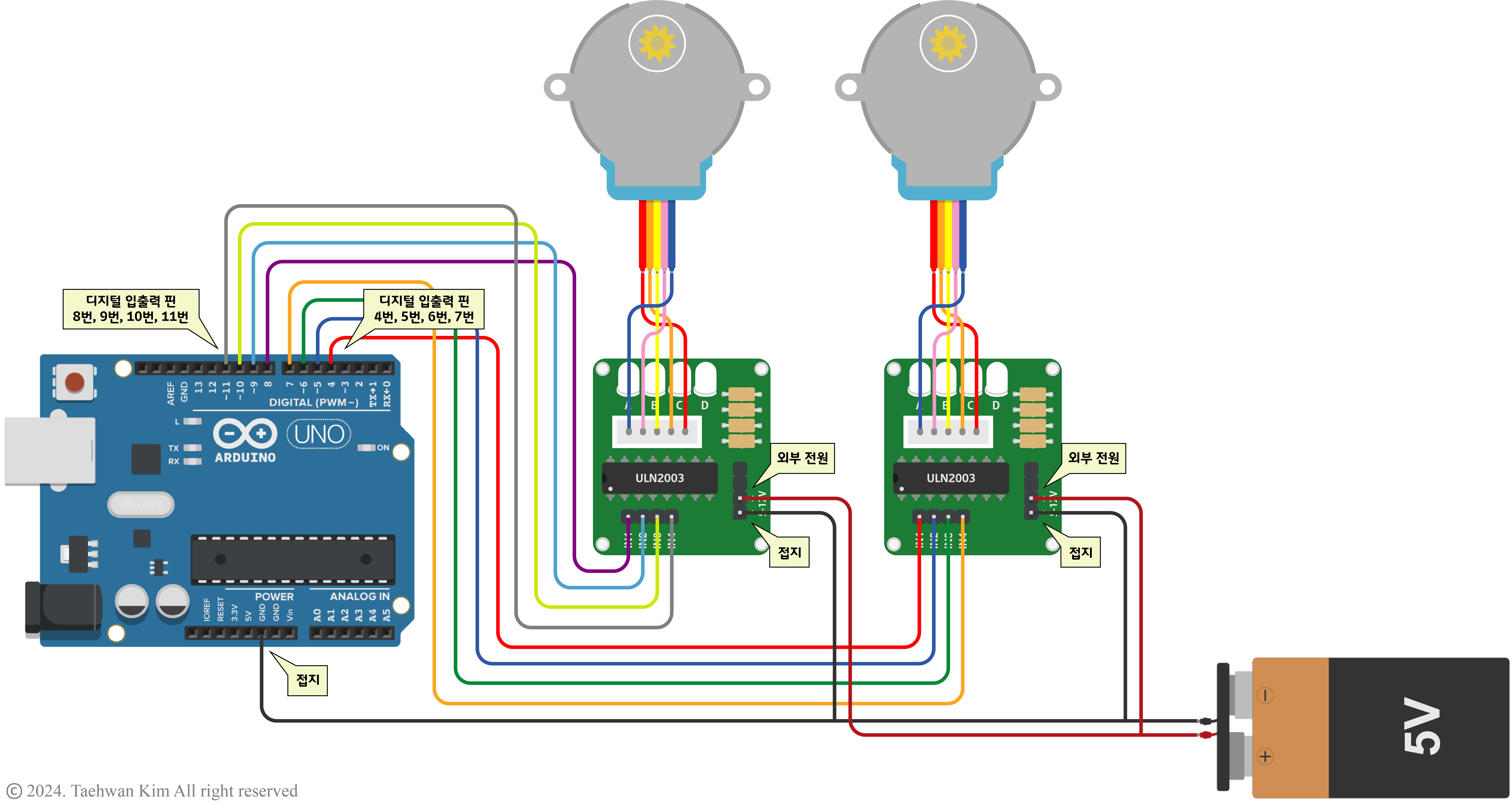 3.1. 회로 구성 - 유니폴라 스텝모터 드라이버 ULN2003 모듈