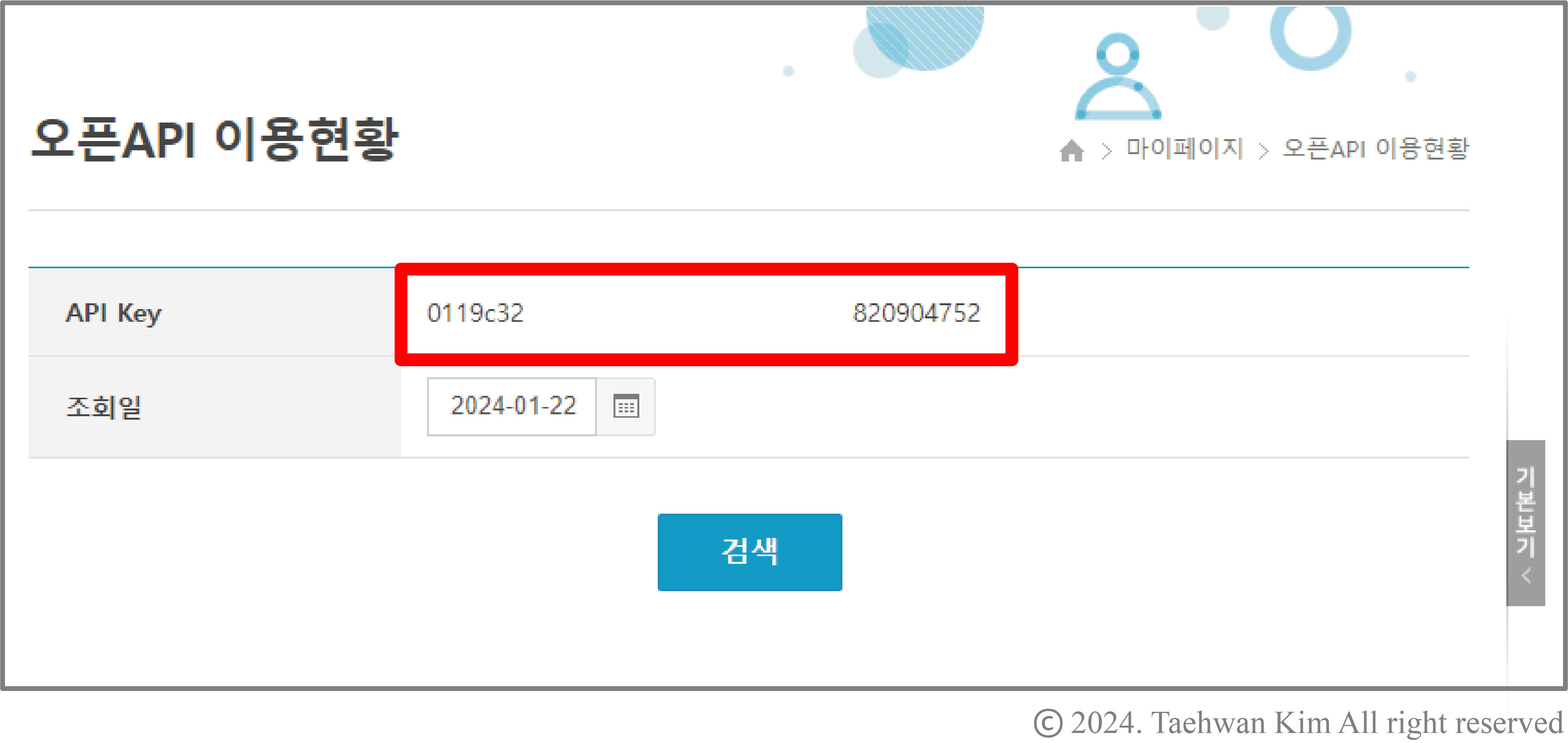 3. 인증키 신청