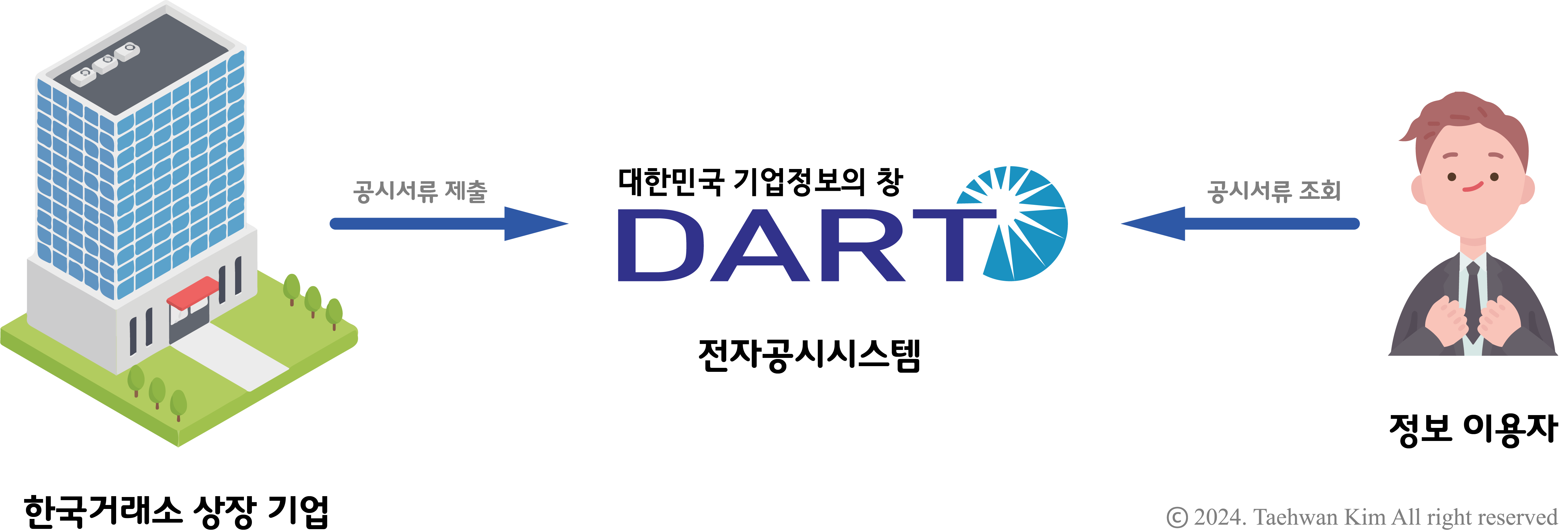 전자공시시스템 DART 전자공시시스템(Data Analysis, Retrieval and Transfer System, DART)은 한국거래소에 상장한 기업의 공시 서류를 온라인으로 조회할 수 있는 시스템이다. 상장 기업이 재무제표를 포함한 공시 서류를 DART에 제출하면 외부사용자들에게 바로 공개된다. 투자자들 입장에서는 기업에 대한 정보를 얻기 위해 기업 홈페이지를 살펴보거나 기업에 직접 연락하지 않고도 정보를 얻을 수 있어 편리하고 합리적인 의사결정이 가능하다.